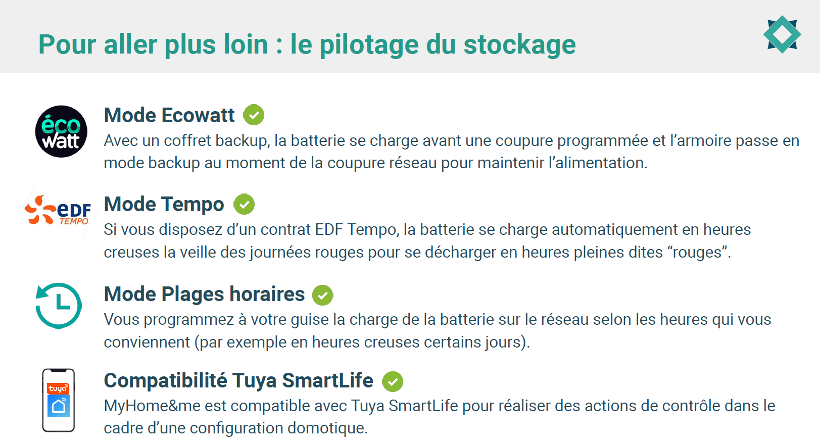 pour gérer les heures de stockage et prolonger le tarif heures creuses en dehors des périodes réglementées,